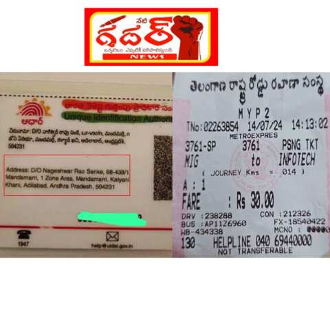 హైదరాబాద్ కూకట్పల్లి 4th ఫేజ్లో ఓ మహిళా ప్రయాణికురాలికి చేదు అనుభవం ఎదురైంది. ఆధార్ కార్డు చూపించి ఫ్రీ టికెట్ ఇవ్వాలని కండక్టర్ను అడిగింది. ఆధార్ కార్డులో అడ్రస్ మందమర్రి, ఆదిలాబాద్ జిల్లా, ఆంధ్రప్రదేశ్ అని ఉంది. రాష్ట్రం స్థానంలో తెలంగాణ ఉండాలని, ఆంధ్రప్రదేశ్ ఉన్నందున ఫ్రీ టికెట్ ఇవ్వనని కండక్టర్.. ప్రయాణికురాలికి తేల్చిచెప్పాడు. తాను తెలంగాణకు చెందిన మహిళనని చెప్పినా, డబ్బులిచ్చి టికెట్ కొనాల్సిందేనని లేదంటే బస్సు దిగి వెళ్లిపోవాలన్నాడు. దీంతో ప్రయాణికురాలు డబ్బులిచ్చి టికెట్ తీసుకుంది. కండక్టర్ తీరుపై ప్రయాణికురాలు తీవ్ర ఆగ్రహం వ్యక్తం చేసింది. ఇలాంటి ఘటనలు పునరావృతం కాకుండా చూడాలని ఆర్టీసీ ఉన్నతాధికారులకు విన్నవించింది.