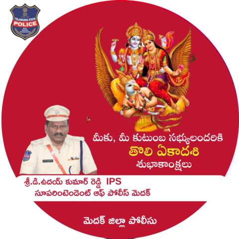 మెదక్ జిల్లా ఎస్ పి. డి. ఉదయ్ కుమార్ రెడ్డి మాట్లాడుతూ ప్రజలందరికీ తొలి ఏకాదశి శుభాకాంక్షలు తెలుపుతూ శాంతియుతంగా మరియు కుటుంబ సమేతంగా కలిసి మెలిసి పండుగను జరుపుకోవాలని తెలియజేశారు.