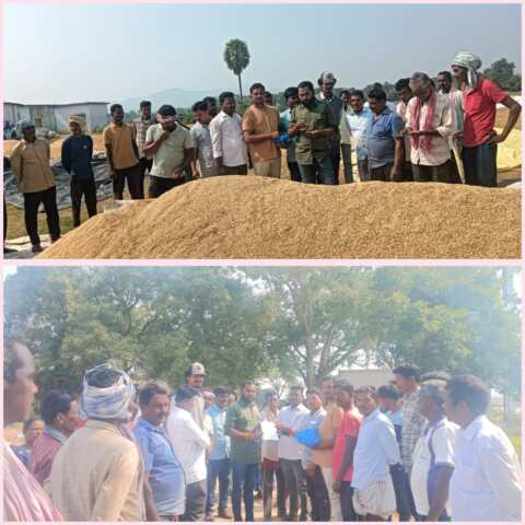 మణుగూరు:- పగడేరు రైతు ధాన్యం కొనుగోలు కేంద్రంలో స్థానిక ఎమ్మార్వో రాఘవ రెడ్డి గారికి సిపిఎం పార్టీ ప్రతినిధి బృందం మరియు రైతులు వారి సమస్యలు పరిష్కారానికి. స్థానిక ఎమ్మార్వో గారికి సమస్యలపై వినతి పత్రం సమర్పించారు. ఈ సందర్భంగా సిపిఎం మండల కార్యదర్శి. సత్ర పల్లి సాంబశివరావు మాట్లాడుతూ. ఆరు కాలం సాగించుకున్న పంటని గద్దల తనుకు పోవాలనే విధంగా మిల్లర్లు దళారులు రైతులను చూసుకుంటున్నారని. కొనుగోలు కేంద్రంలో నిబంధనలకు లోబడి చేసుకొని ధాన్యం ను మిల్లర్ల కాడికి తీసుకెళ్తే అక్కడ మిల్లర్లు ఇష్టం వచ్చిన రీతిలో ధాన్యం బాగా లేవని ఏదో ఒక సాగు చెప్పి అదనంగా రెండు మూడు కేజీలు కింటా కి దోచుకోవాలని చూస్తున్నారని రైతులు నష్టపోతున్నారని. పాత బత్తాల తోటి గింజలని నింపుకోవడం వల్ల పాత బస్తాలో మిగిలిన ఒకటి రెండు గింజలు సాకుగా చూపించి దోచుకోవాలని చూస్తే ఊరుకునేది లేదని అటువంటి వారిపై చర్యలు తీసుకోవాలని. స్థానిక ఎమ్మార్వో గారికి వినతిపత్రం సమర్పించారు. అనంతరం ఎమ్మార్వో గారు రైతులకు సుమారు 15000 కొత్త బస్తాలు మరి ఇబ్బందులు లేకుండా ధాన్యం కొనుగోలు జరుగుతుందని వారికి హామీ ఇచ్చారు. ఈ కార్యక్రమంలో. సిపిఎం మండల కమిటీ సభ్యులు కుంజరాజు. శాఖ కార్యదర్శి నరసింహారావు. KCR రాజా. రామారావు. నాగమణి. తెల్లం భద్రయ్య. వజ్జ సూరయ్య కుంజ నారాయణ. సోడి వెంకన్న. తదితరులు రైతులు పాల్గొన్నారు.