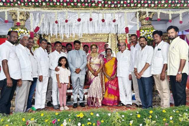 నేటి గద్దర్ న్యూస్, అశ్వారావుపేట, మార్చ్, 16: అశ్వారావుపేట మండలం మల్లాయిగూడెం మాజీ సర్పంచ్ నారం రాజ్ శేఖర్ వివాహ వేడుకలో భద్రాద్రి కొత్తగూడెం జిల్లా బిఆర్ఎస్ పార్టీ జిల్లా అధ్యక్షులు, మాజీ ఎమ్మెల్యే రేగ కాంతారావు అశ్వారావుపేట నియోజకవర్గ బిఆర్ఎస్ పార్టీ ఇంచార్జీ మాజీ ఎమ్మెల్యే మెచ్చా నాగేశ్వరరావుతో మరియు స్థానిక నాయకులతో కలిసి పాల్గొని నవ దంపతులను ఆశీర్వదించి శుభాకాంక్షలు తెలియజేశారు. అనంతరం అందరినీ ఆత్మీయంగా పలకరించారు. ఈ కార్యక్రమంలో సోయం వీరభద్రం, జిల్లా అధికార ప్రతినిధి యూఎస్ ప్రకాష్ రావు, మాజీ ఎంపీపీ జల్లిపల్లి శ్రీరామ్ మూర్తి, మోహన్ రెడ్డి, సత్యవరపు సంపూర్ణ, మోటూరి మోహన్, గోవిందు, చిప్పనపల్లి శ్రీను, తుంపాటి రమేష్ తదితరులు ఉన్నారు.