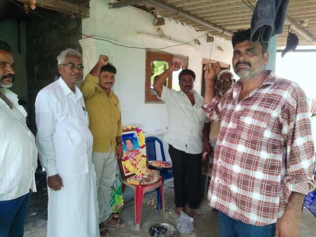 ఎర్రుపాలెం మండల పరిధిలోని రామపురం గ్రామనికి చెందిన పాపన జయరామ్ భార్య సిపి(ఐ)ఎం పార్టి సభ్యురాలు ఆరోగ్యముతో ఇటివల పాపన నాగేంద్ర మృతి చెందారు. ఆమె దశ దిన కార్యక్రమానికి సిపిఎం జిల్లా నాయకులు దివ్వెల వీరయ్య,మండల కార్యదర్శి మద్దాల ప్రభాకరరావు హాజరై ఆమె చిత్రపటానికి పూలమాల వేసి ఘనంగా నివాళులర్పించారు. ఈ కార్యక్రమంలో సిపిఎం మండల సభ్యులు అంగొతు వేంకటేశ్వర్లు,సగుర్తి సంజీవరావు, లగడపాటి అప్పారావు,షేక్ పాకిర్,వేంకటేశ్వర్లు,మస్తాన్,కొందేపాటి గురవయ్య, సుందరయ్య తదితరులు పాల్గొన్నారు…