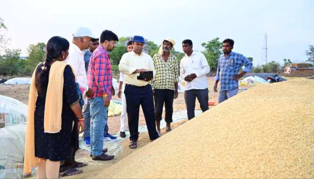 రామాయంపేట (నేటి గదర్ ప్రతినిధి) మే 10:- మెదక్ జిల్లా రామాయంపేట మండలం అక్కన్నపేట గ్రామంలో ఏర్పాటు చేసిన ధాన్యం కొనుగోలు కేంద్రాన్ని జిల్లా కలెక్టర్ రాహుల్ రాజ్ సందర్శించి కొనుగోలుకు సంబందించిన రిజిస్టర్లను పరిశీలించారు.ఈ సందర్బంగా కలెక్టర్ మాట్లాడుతూ రైతులు ఎలాంటి ఇబ్బందులకు గురికాకుండా ధాన్యం కొనుగోలు ప్రక్రియ వేగవంతం చేయాలని అన్నారు.కొనుగోలు కేంద్రాలకు వచ్చిన ధాన్యంకు తేమశాతం రాగానే కొనుగోలు ప్రక్రియ మొదలవ్వాలని ట్యాగ్ చేసిన రైస్ మిల్లులకు తరలించాలని తెలిపారు.కొనుగోలు చేసిన ధాన్యానికి సంబంధించిన వివరాలు,రైతుల ఖాతా వివరాలను ఎలాంటి ఆలస్యం కాకుండ ఆన్లైన్ లో నమోదు చేయాలన్నారు.అకాల వర్షాల నేపథ్యంలో ఎప్పటికప్పుడు జాగ్రత్తగా ఉండాలని సరిపడా టార్ఫాలిన్ లను,గన్ని సంచులను అందుబాటులో ఉంచుకోవాలని కేంద్ర నిర్వాహకులను ఆదేశించారు.కొనుగోలు చేసిన ధాన్యానికి అనుగుణంగా లారీలను ముందస్తుగా అందుబాటులో ఉంచుకోవాలన్నారు.అయన వెంట కొనుగోలు కేంద్ర నిర్వాహకులు, మండల తహసీల్దార్ రజనీకుమారి తదితరులు పాల్గొన్నారు.