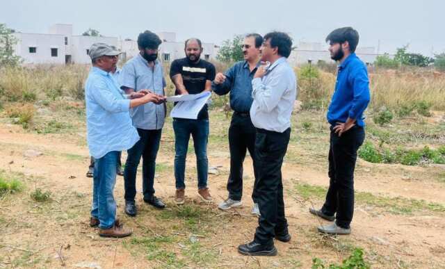రామాయంపేట (నేటి గదర్ ప్రతినిధి) మే 18:- మెదక్ జిల్లా రామాయంపేట మండల కేంద్రంలోని జాతీయ రహదారి 44 వద్ద ఉన్న 1421 సర్వే నెంబర్ లో ప్రభుత్వం 20 ఎకరాల భూమిని ప్రభుత్వం కేటాయించింది.దీనికి ఇంటర్నేషనల్ రెసిడెన్షియల్ స్కూల్ నిర్మాణం కోసం పనులు ప్రారంభించడానికి ప్రభుత్వ భూమిని ప్రభుత్వ అధికారులు ఆర్కి టెక్చర్ ఆస్కార్ మరియు పొన్ని సర్వేయర్ ప్రభాకరన్, ఇంజనీరింగ్ ఓబుల్ రెడ్డి, ఎలక్ట్రికల్ ఇంజనీర్ ఫైజాన్ అహ్మద్, డిఈ ఎస్.నర్సింహా చారి లు పరిశీలించారు.ఈ కార్యక్రమంలో మండల ఆర్ఐ గౌస్ మొయినోద్దీన్ మరియు మండల అధికారులు తదితరులు పాల్గొన్నారు.