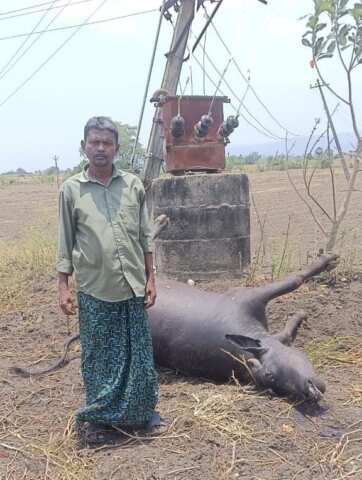 నేటి గదర్ న్యూస్ ప్రతినిథి మంగపేట. విద్యుత్ ఘాతంతో పాడి గేద మృతి చెందిన సంఘటన మండలంలోని కత్తిగూడెం గ్రామంలో చోటుచేసుకుంది. బాధితుడు శానపురి లాలయ్య తెలిపిన వివరాల మేరకు తన కుటుంబానికి జీవనోపాధిగా ఉన్న పాడి గేదెను మేత కోసం శుక్రవారం ఉదయం వదలగా సాయంత్రం అయిన గేదె ఇంటికి రాలేదని శనివారం గేదె కోసం వెతుకుతుండగా కత్తిగూడెం గ్రామంలోని పంటపొలాల్లో ఉన్న విద్యుత్ ట్రాన్స్ఫార్మర్ కి తగిలి మృతి చెందినట్టు తెలిపారు. తన కుటుంబానికి జీవనోపాధిగా ఉన్న పాడిగేదే మృతితో సుమారు 50 వేల రూపాయల నష్టం జరిగినట్లు వెల్లడించాడు. ఈ విషయంలో సంబంధిత విద్యుత్ శాఖ అధికారులు స్పందించి తనకు న్యాయం చేయాలని బాధిత పాడి రైతు కోరారు.