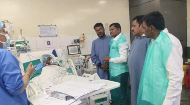 నేటి గద్దర్ న్యూస్, అశ్వారావుపేట, మే, 19: హైదరాబాద్ నాంపల్లి కేర్ ఆసుపత్రిని సోమవారం అశ్వారావుపేట నియోజకవర్గం ఎమ్మెల్యే జారె ఆదినారాయణ సందర్శించారు. ఈ సందర్బంగా అశ్వారావుపేట మండలం, జమ్మిగూడెం, గ్రామానికి చెందిన వెంకటలక్ష్మి దమ్మపేట మండలం నాయుడుపేట గ్రామానికి చెందిన రఘు, గుండె సంబందిత వ్యాధితో బాధపడుతూ ట్రీట్మెంట్ పొందుతుండగా వారిని పరామర్శించి ఆరోగ్య వివరాలు డాక్టర్ల ద్వారా తెలుసుకొని మెరుగైన చికిత్స అందించాలని సూచించారు. ఈ కార్యక్రమంలో నాయుకులు ముబారక్ బాబా తదితరులు పాల్గొన్నారు.