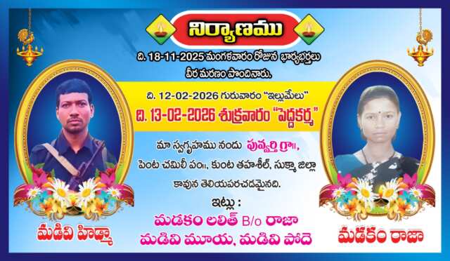 మడివి హిడ్మా దంపతుల పెద్ద ఖర్మ నిర్వహించనున్న కుటుంబ సభ్యులు!స్థలం అక్కడే!